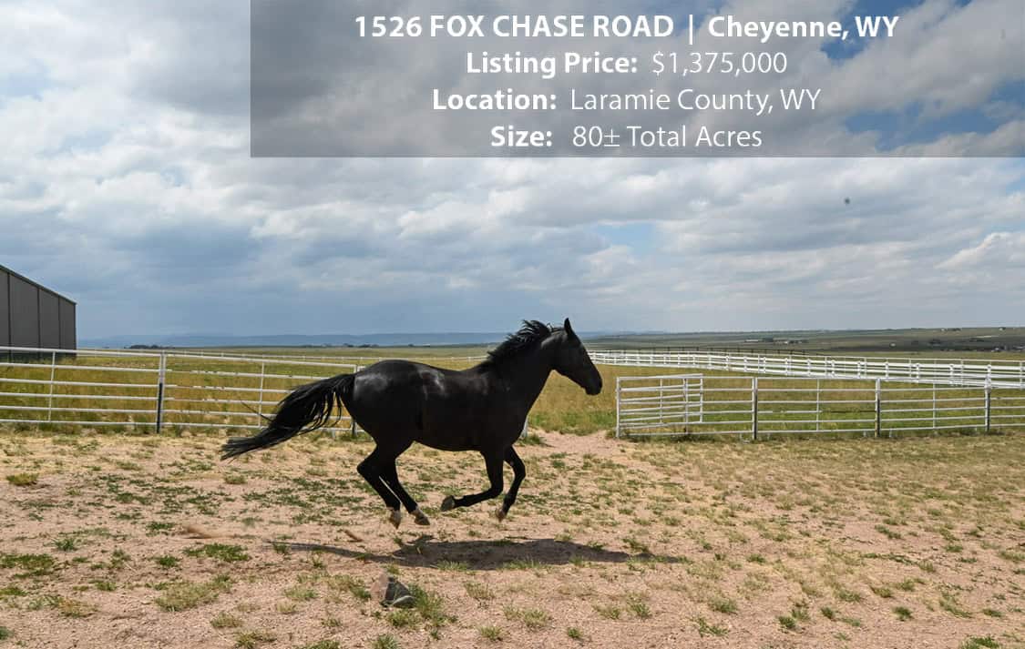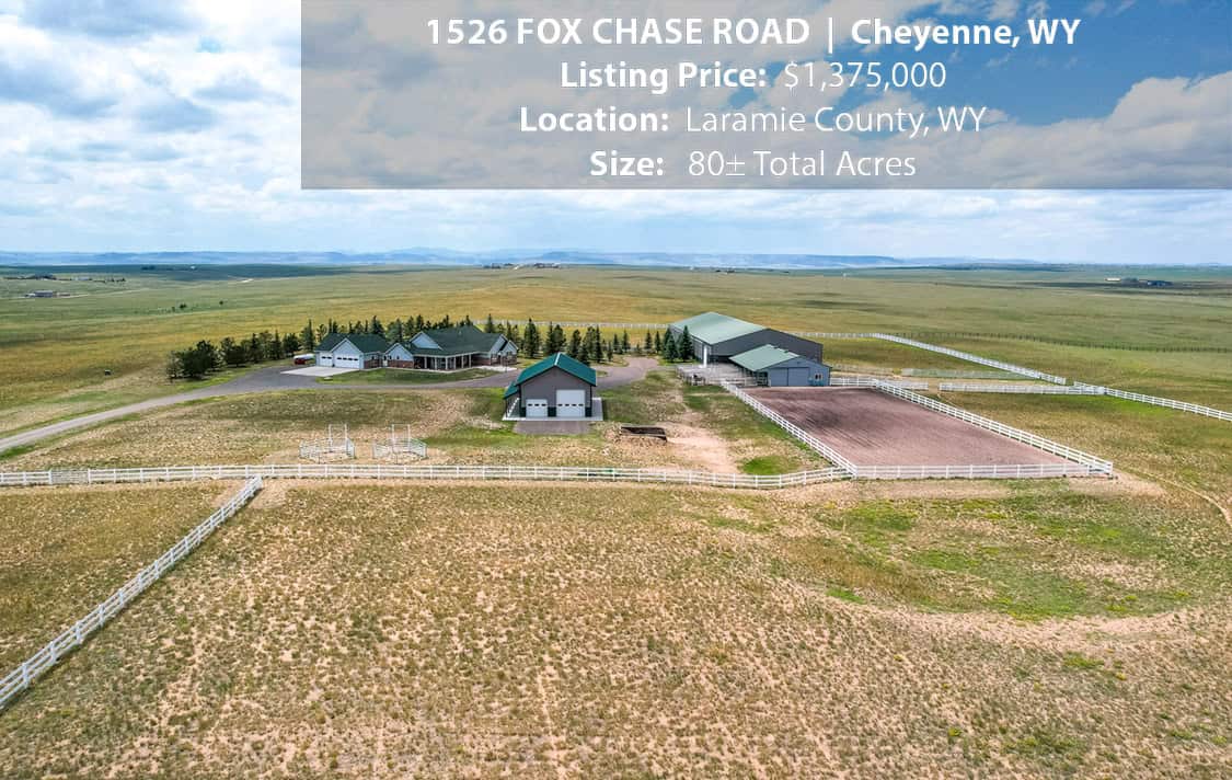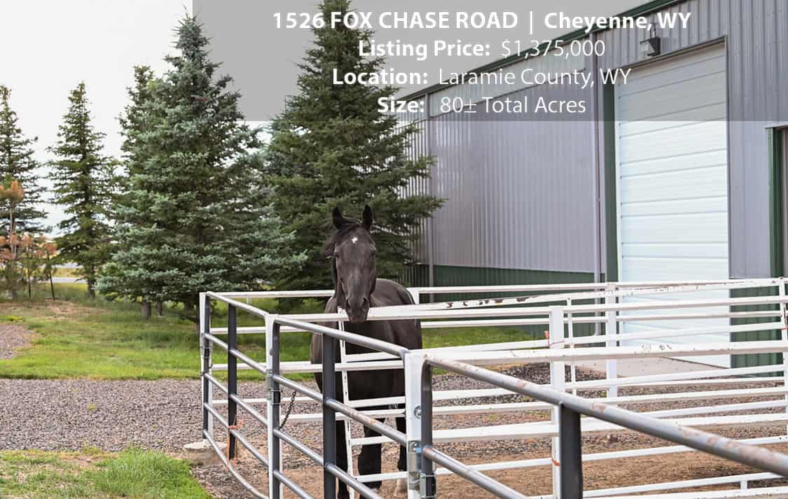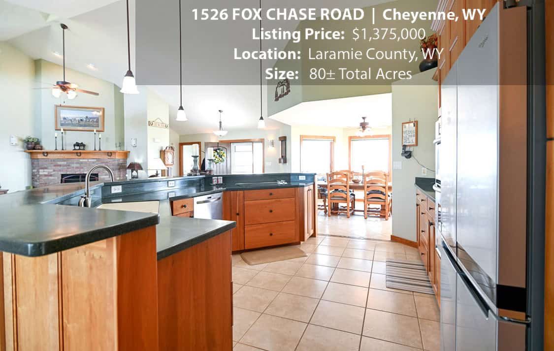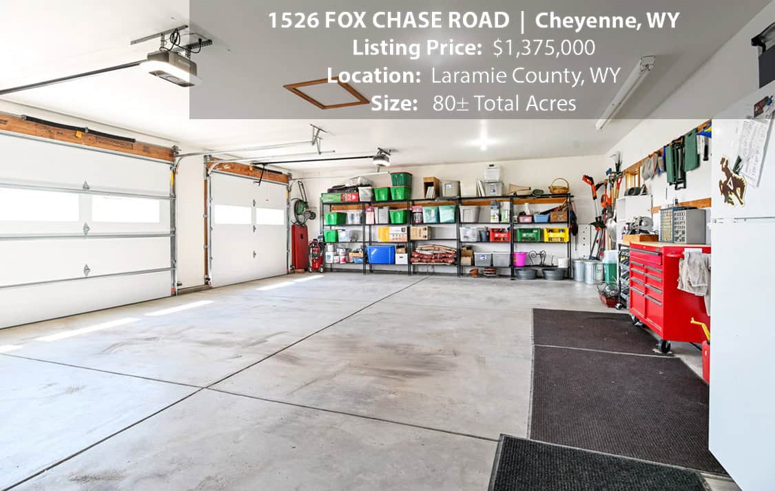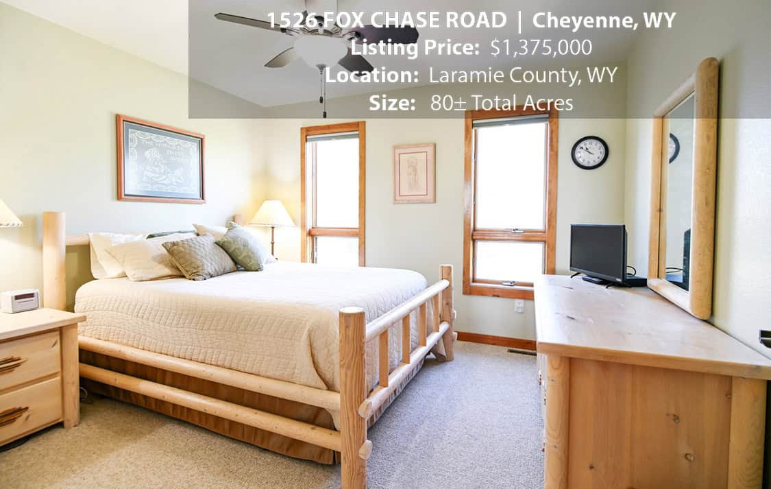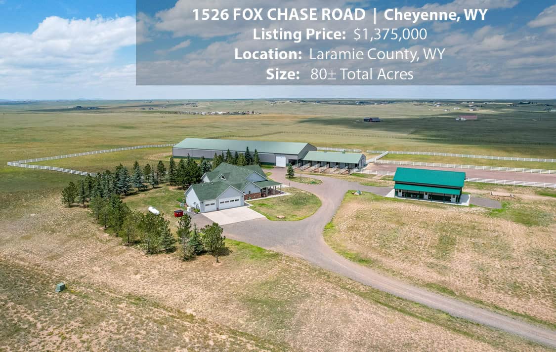 • Situated on 80± deeded acres just west of Cheyenne, Wyoming is this turn-key property featuring a 2,518 sq ft, 4 bedroom, 2.5 bath, open floorplan home with vaulted ceiling, gas fireplace, attached sun room/patio, 36” wide doors, and an extended 3 car attached garage.