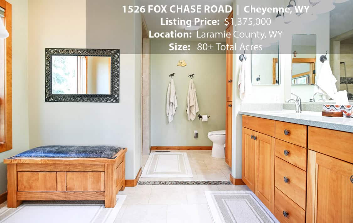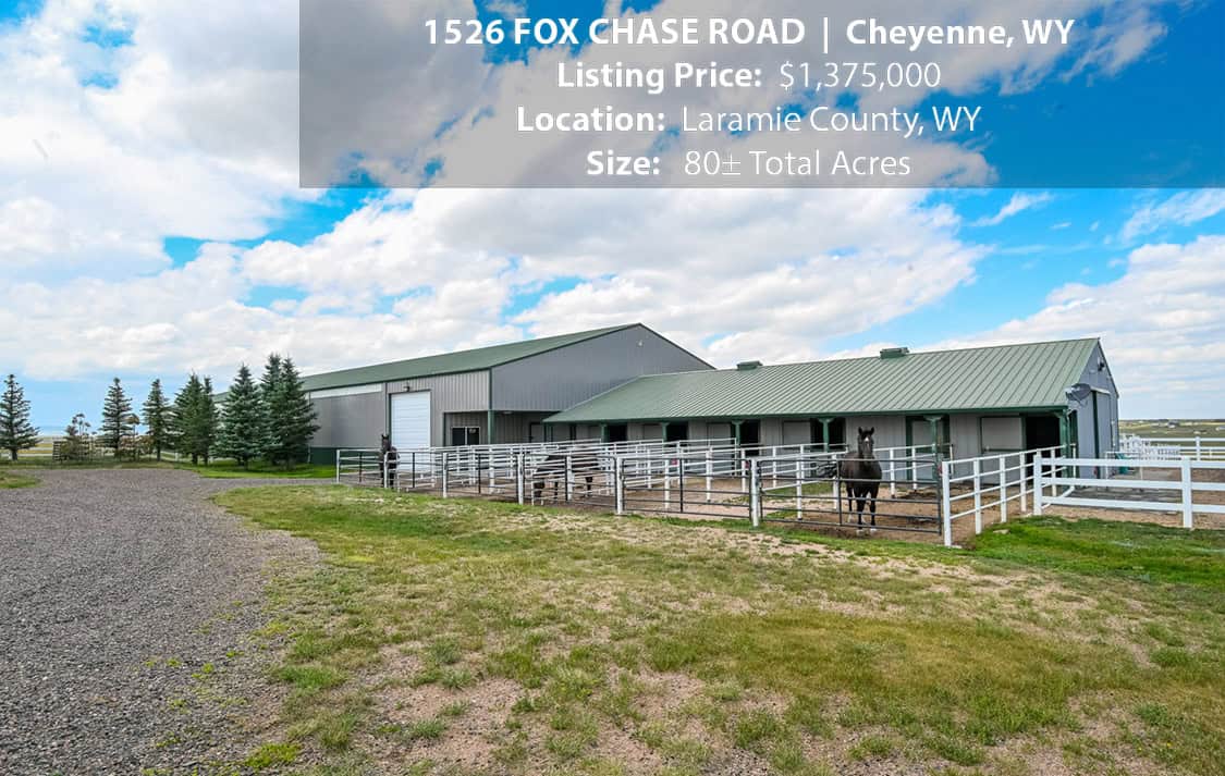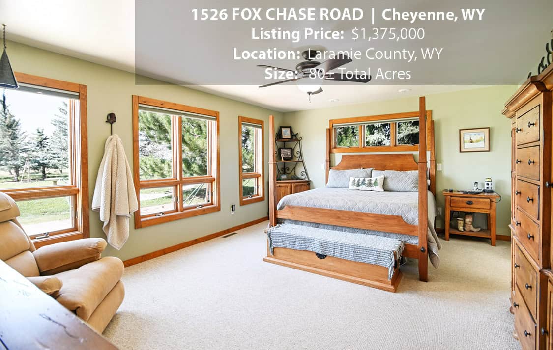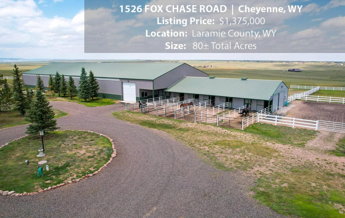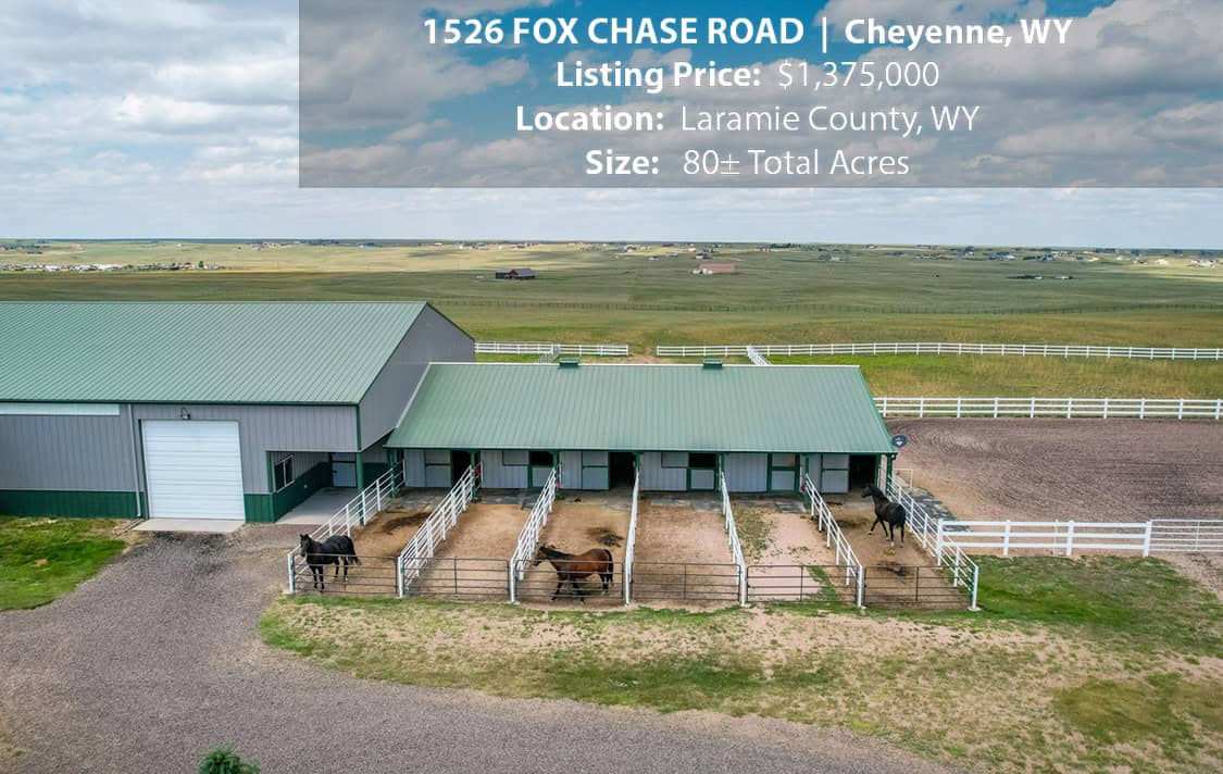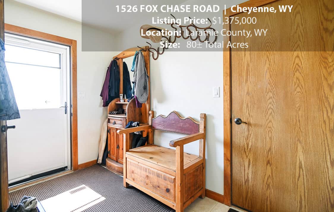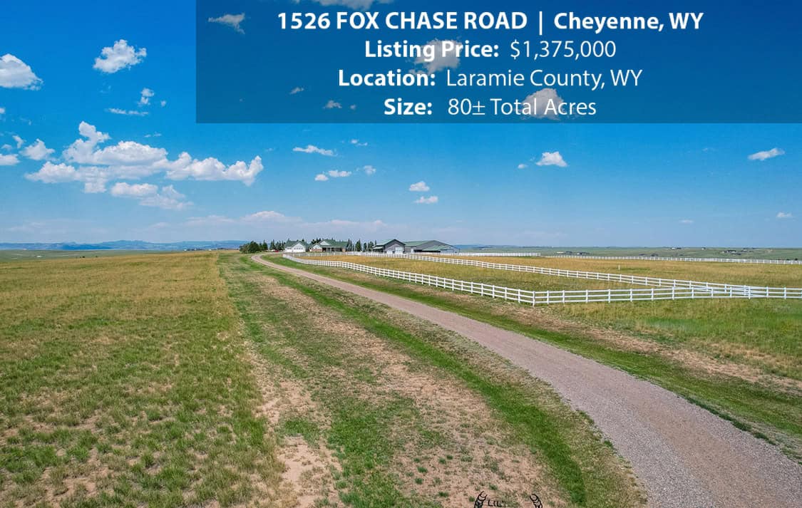 • Situated on 80± deeded acres just west of Cheyenne, Wyoming is this turn-key property featuring a 2,518 sq ft, 4 bedroom, 2.5 bath, open floorplan home with vaulted ceiling, gas fireplace, attached sun room/patio, 36” wide doors, and an extended 3 car attached garage.