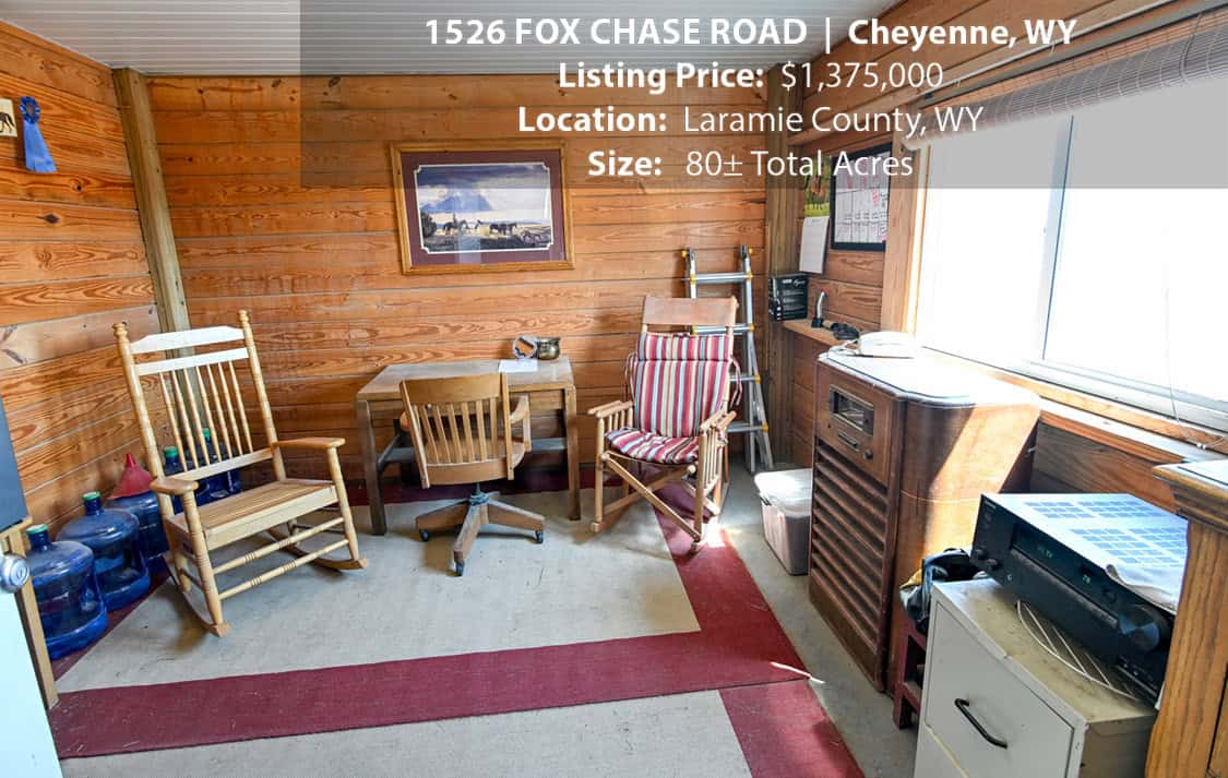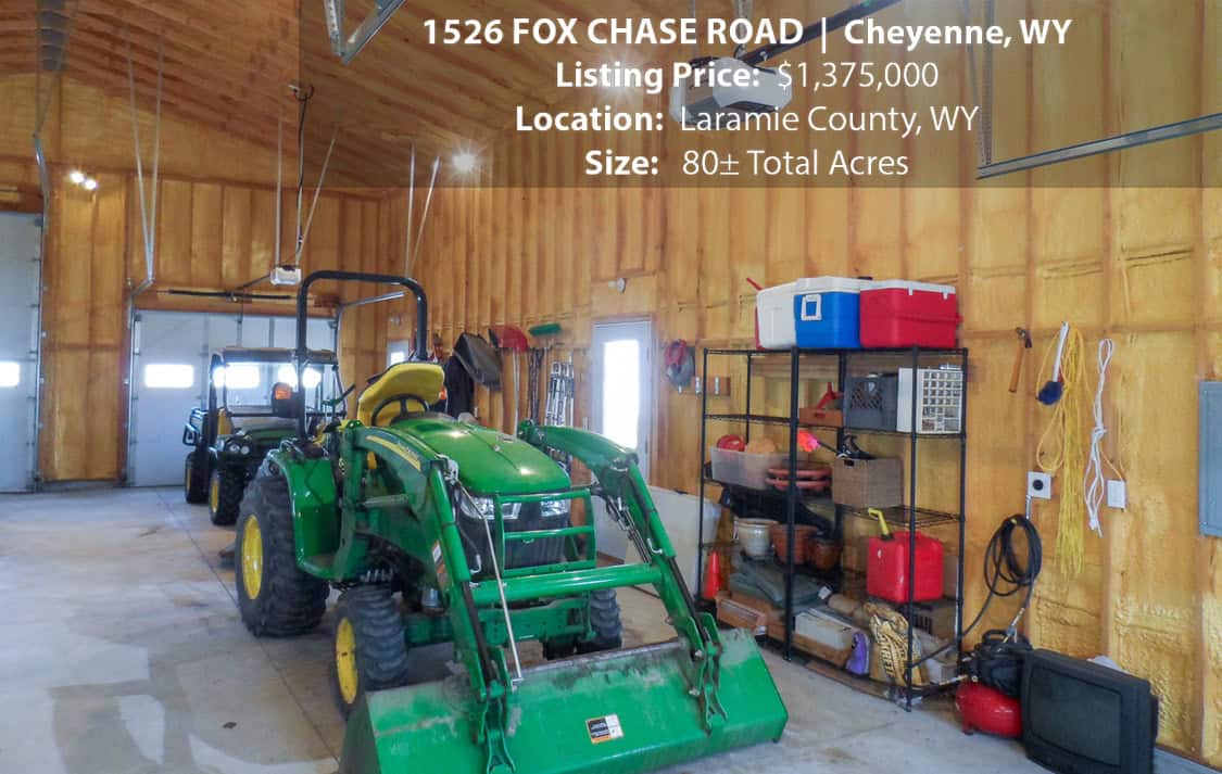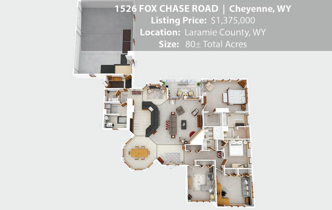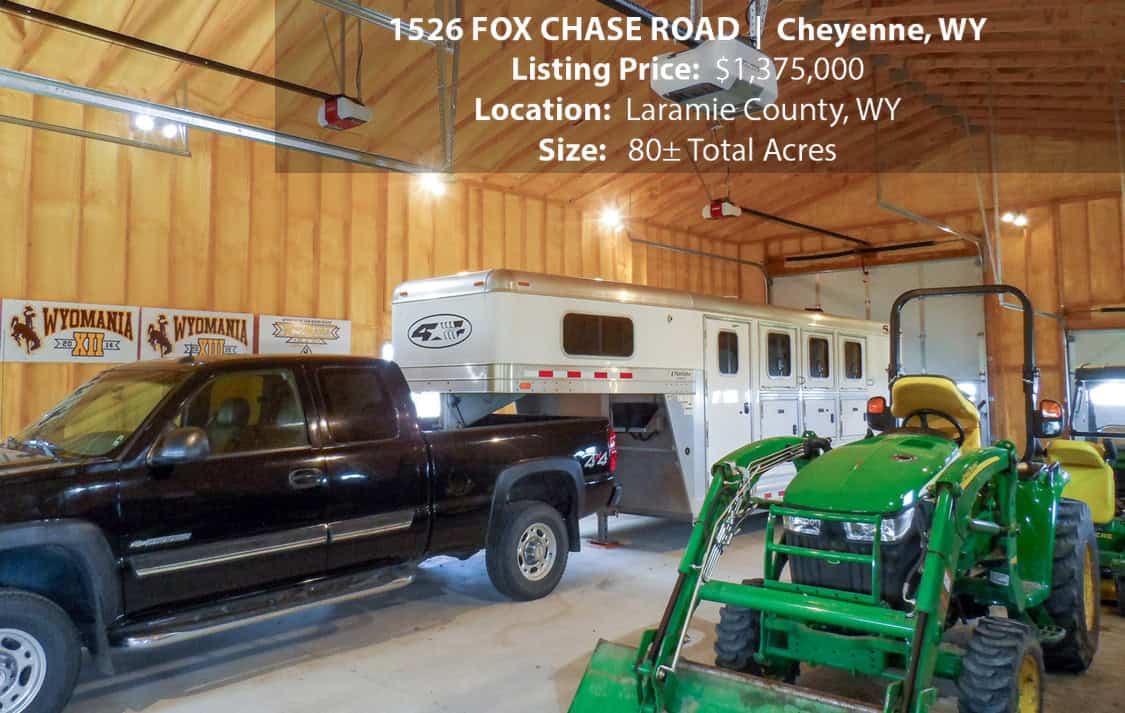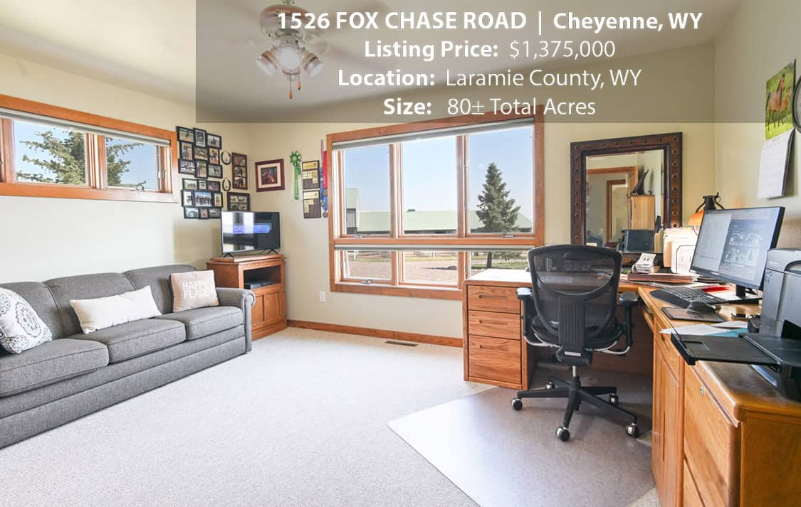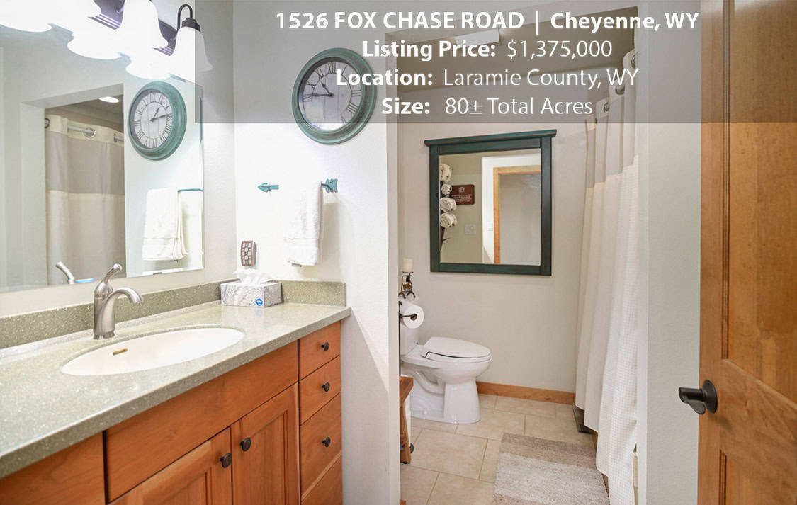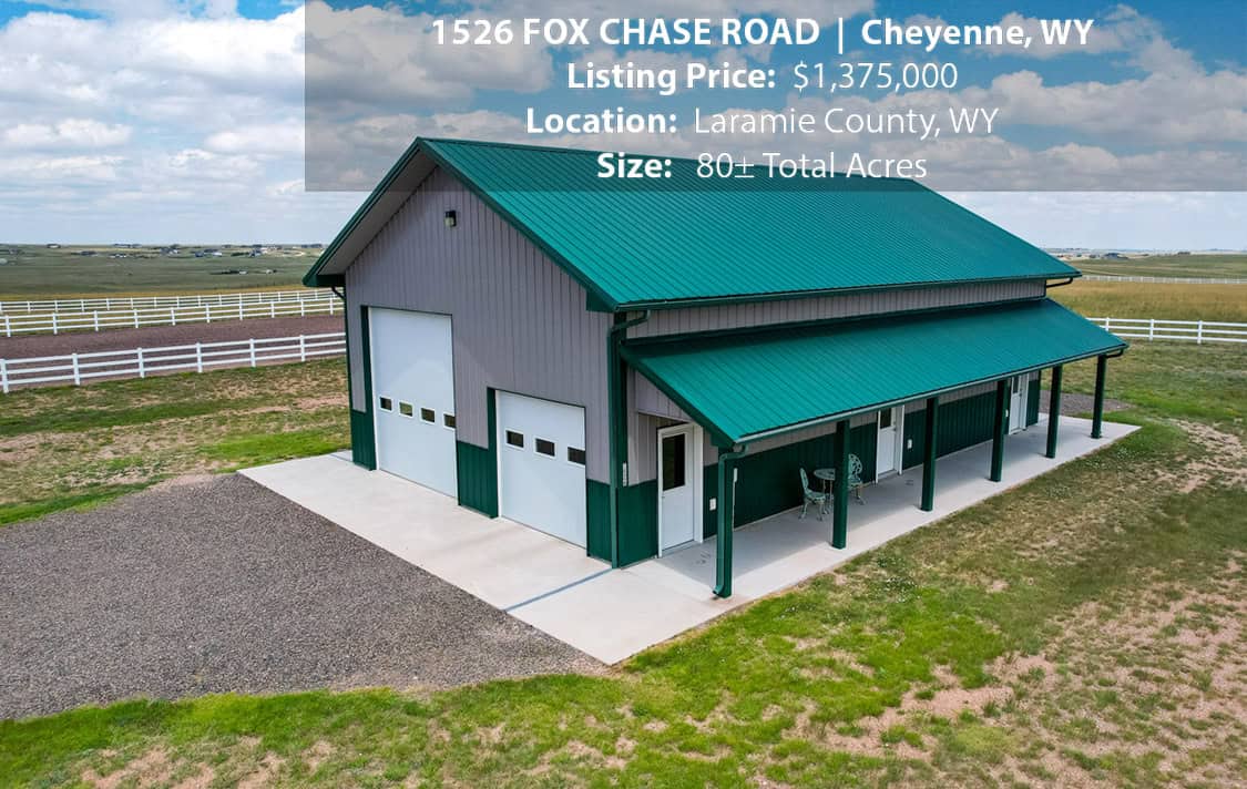 • Situated on 80± deeded acres just west of Cheyenne, Wyoming is this turn-key property featuring a 2,518 sq ft, 4 bedroom, 2.5 bath, open floorplan home with vaulted ceiling, gas fireplace, attached sun room/patio, 36” wide doors, and an extended 3 car attached garage.