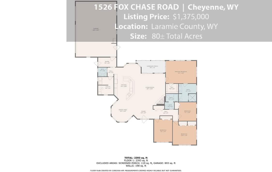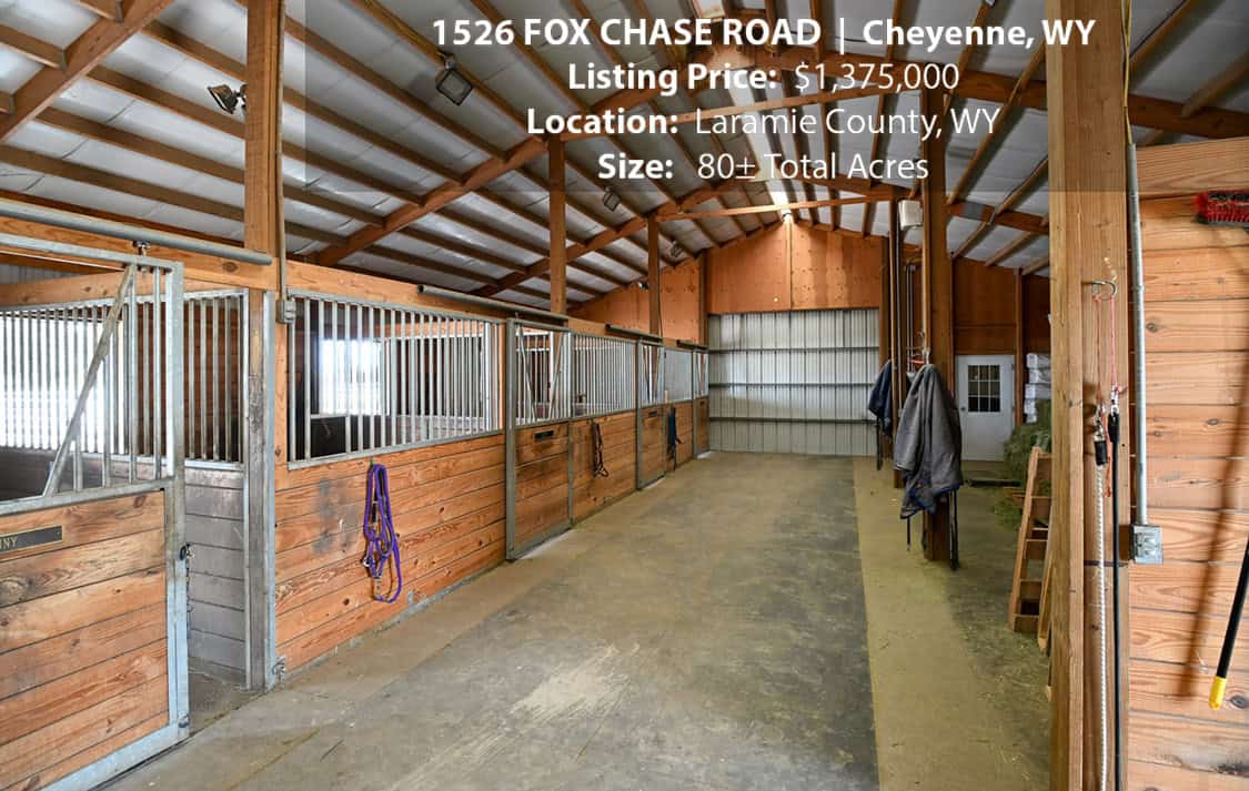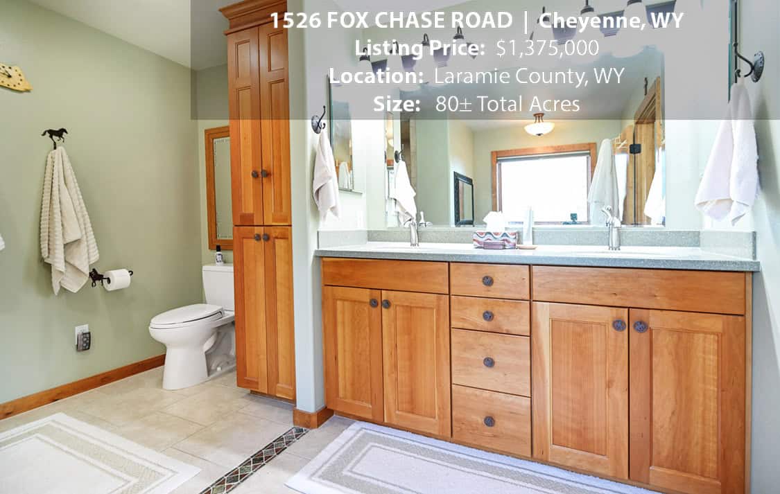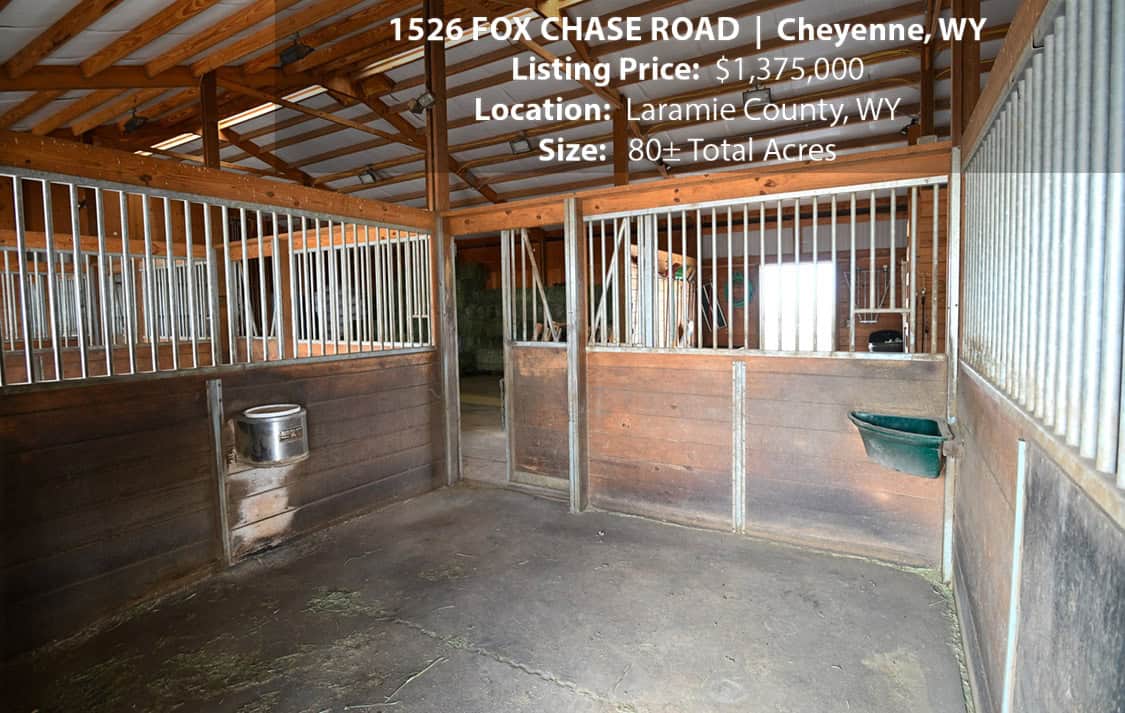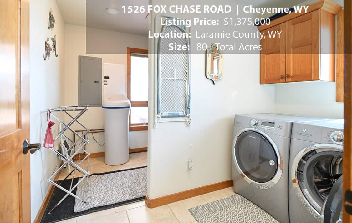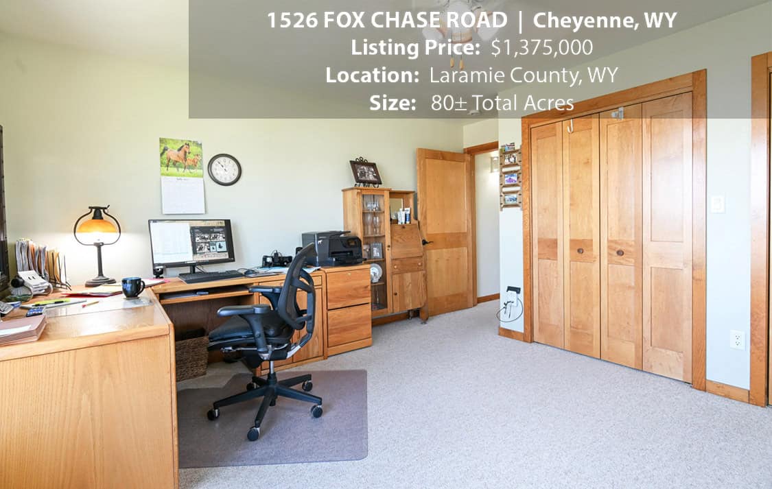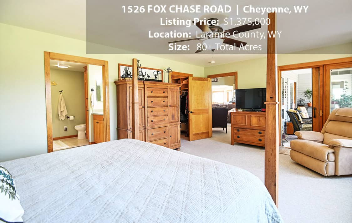 • Situated on 80± deeded acres just west of Cheyenne, Wyoming is this turn-key property featuring a 2,518 sq ft, 4 bedroom, 2.5 bath, open floorplan home with vaulted ceiling, gas fireplace, attached sun room/patio, 36” wide doors, and an extended 3 car attached garage.