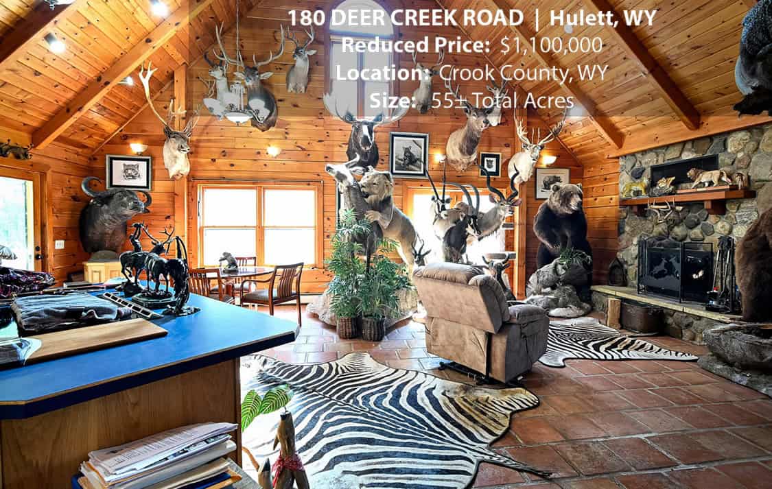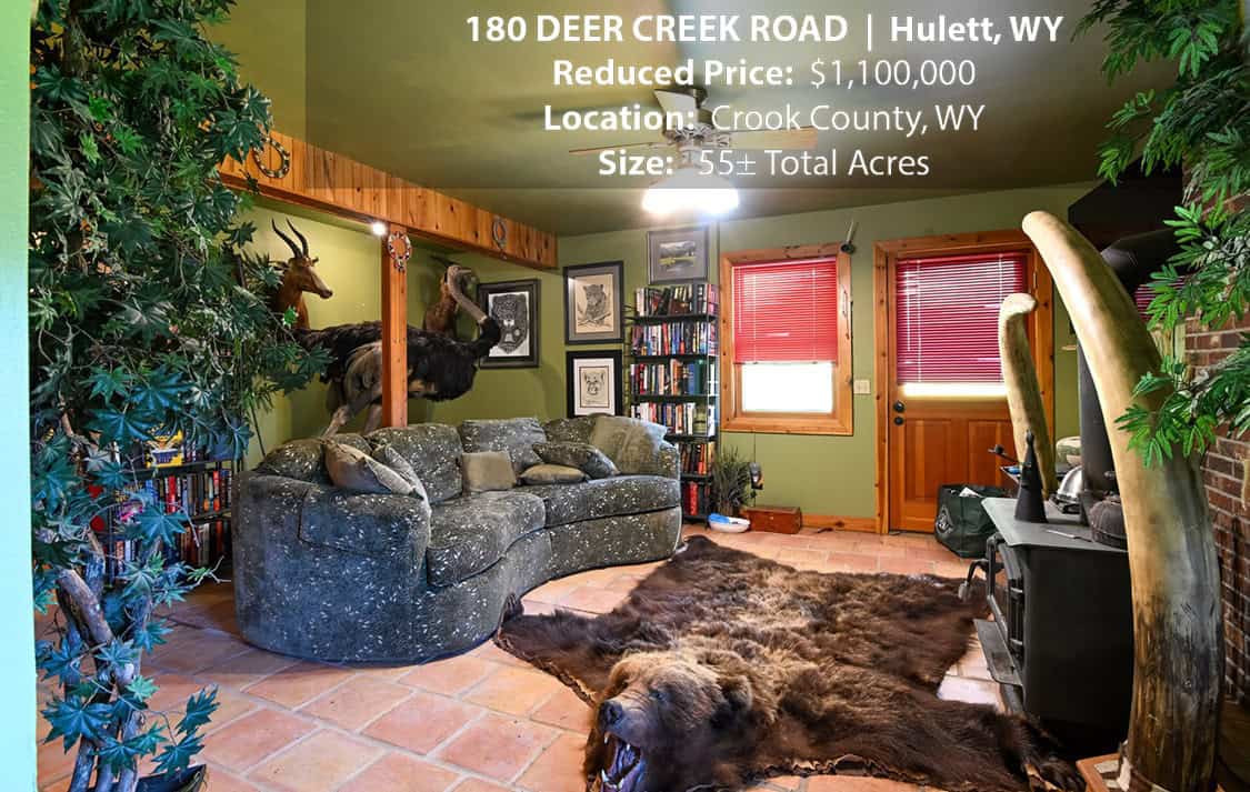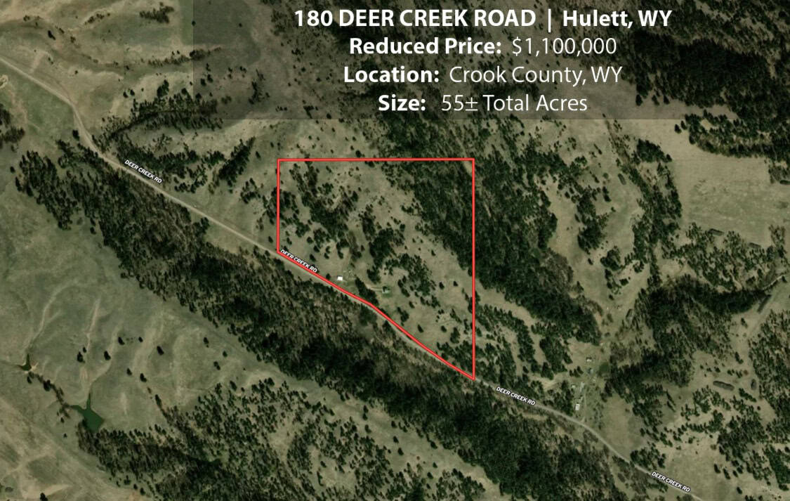 • Located approximately 15 miles north of Hulett, Wyoming, this very private estate is situated on 55 wooded acres with reliable year-round access.