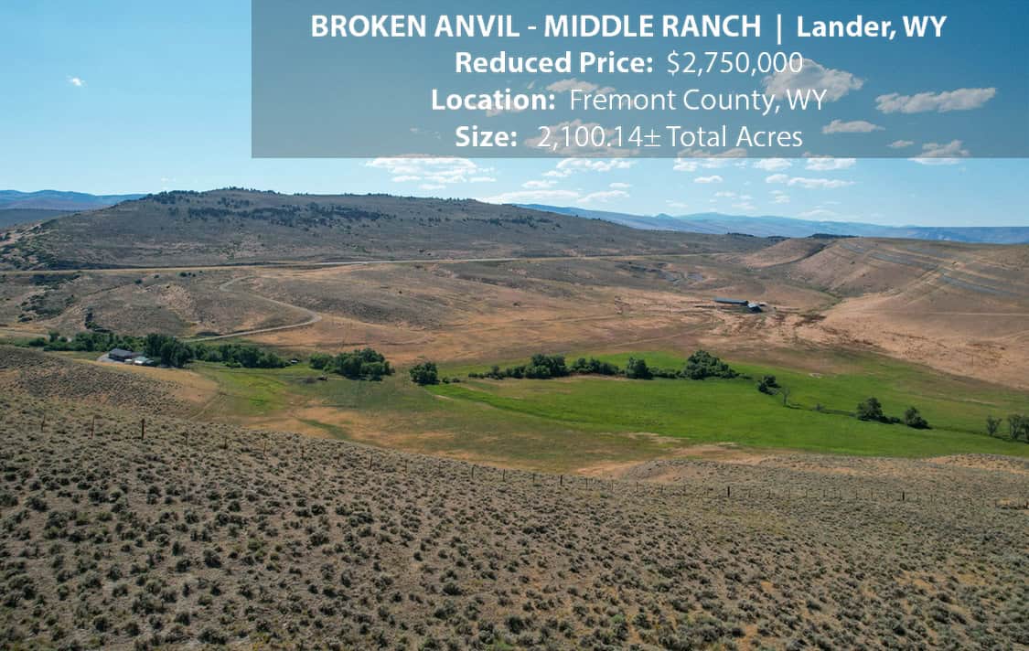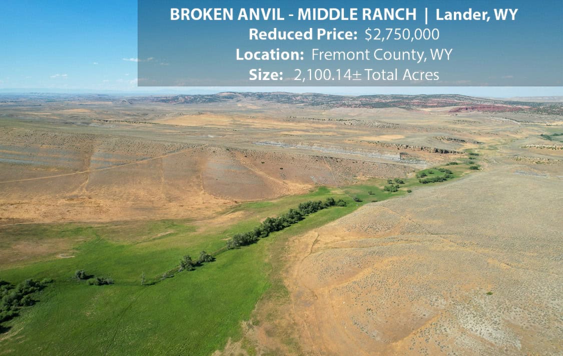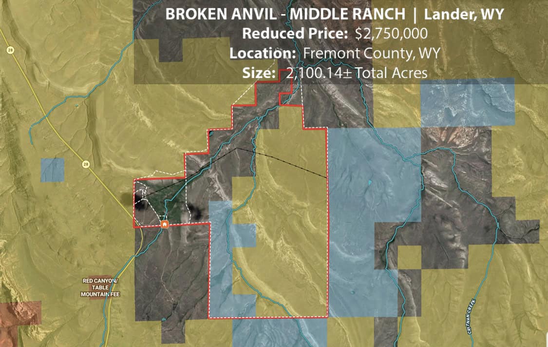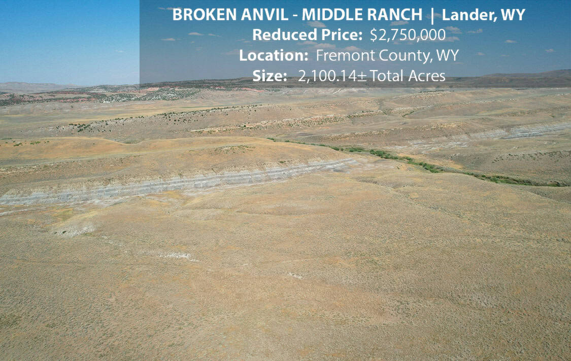 • The Broken Anvil Middle Ranch is easily accessed via US Highway 28 and is located at the foot of the Wind River Mountains with seasonal live water throughout the property.