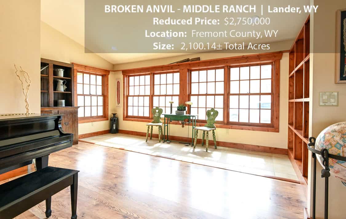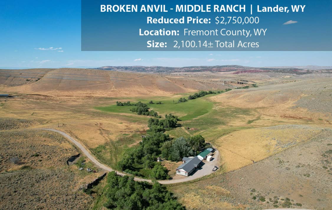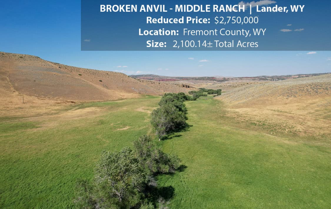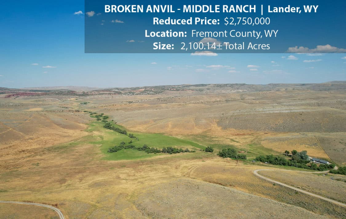 • The Broken Anvil Middle Ranch is easily accessed via US Highway 28 and is located at the foot of the Wind River Mountains with seasonal live water throughout the property.