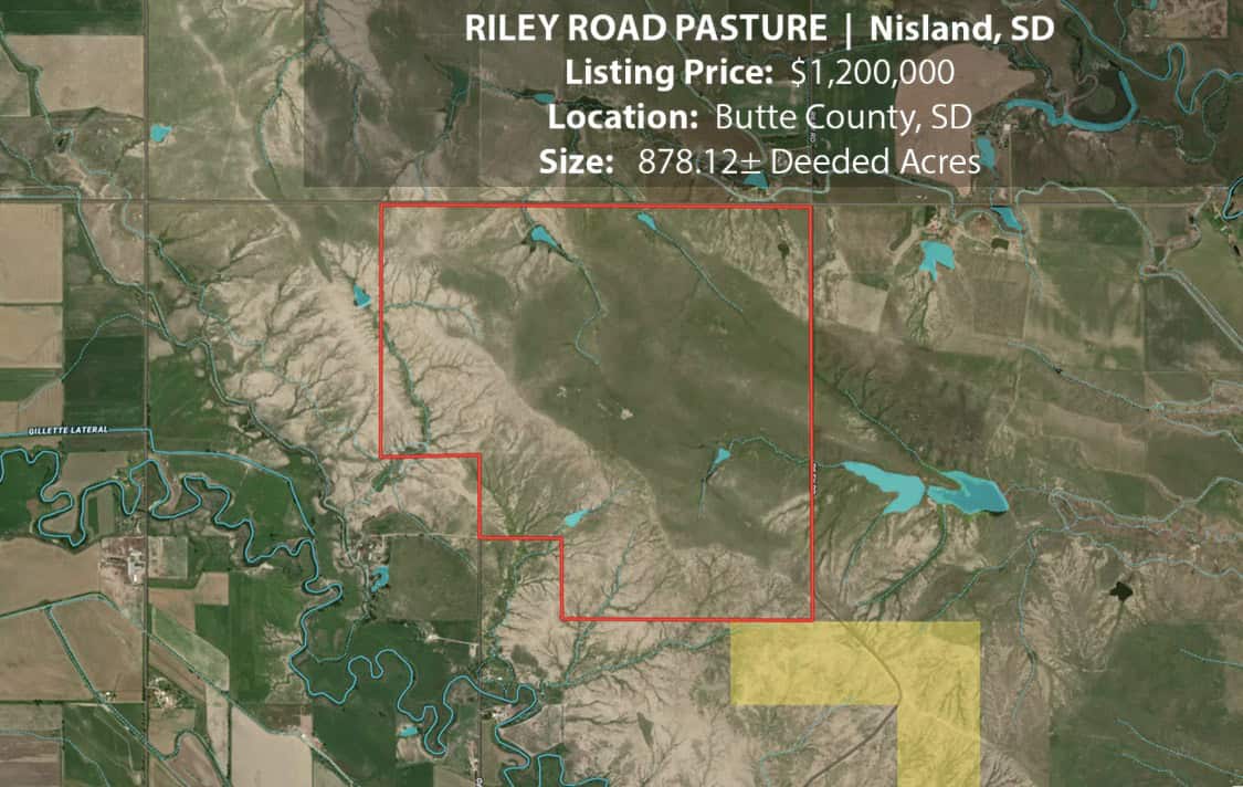 • Consisting of 878.12± deeded acres in rural Butte County, South Dakota, this property is located approximately three miles north of Nisland, SD and offers beautiful views of the Black Hills.