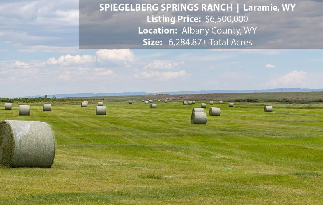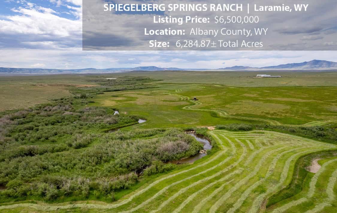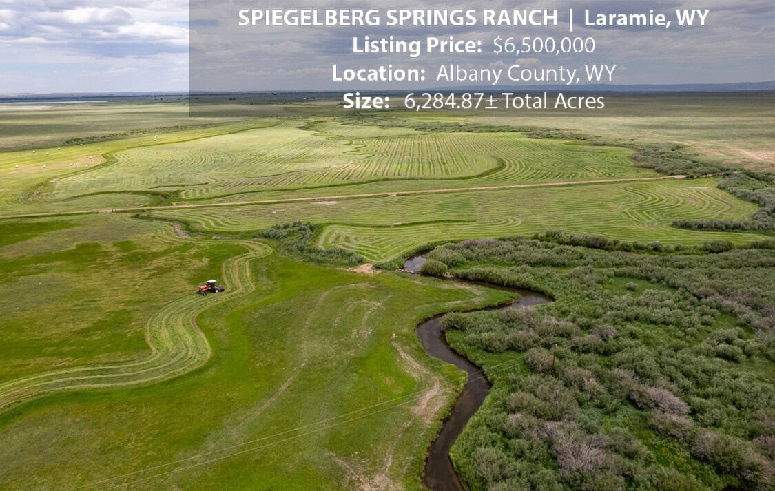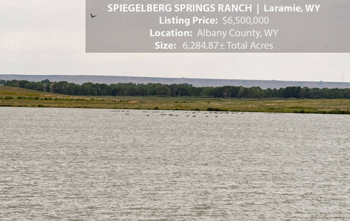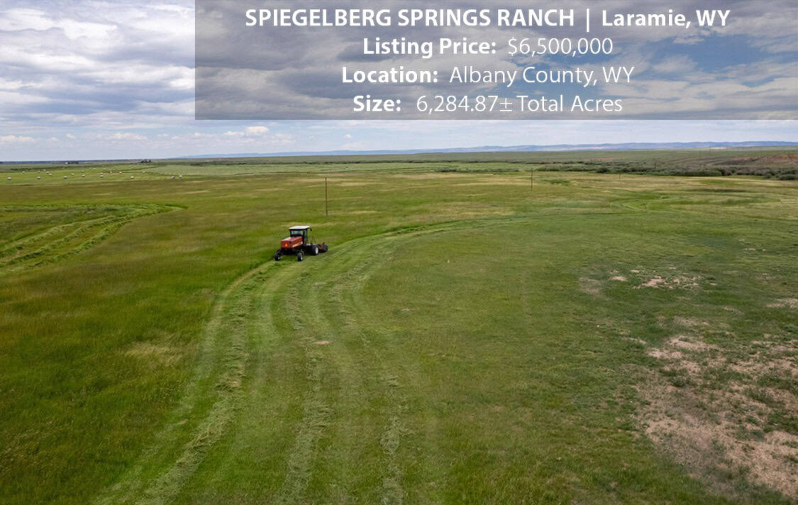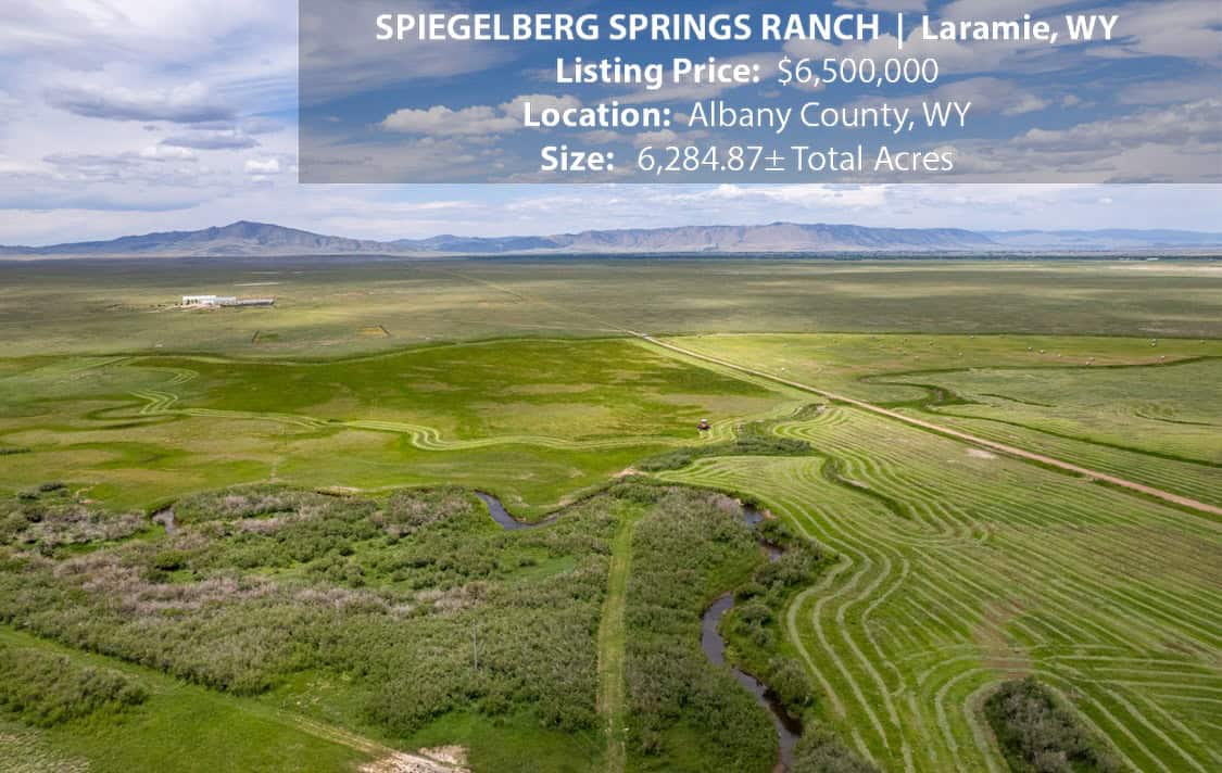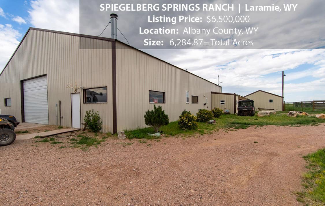 • Located approximately 19 miles southwest of Laramie, Wyoming and surrounded on three sides by the Laramie Mountains, the Spiegelberg Springs Ranch consists of 6,284.87± total acres of which 5,019± acres are deeded and 1,265± acres are State of Wyoming lease acres.