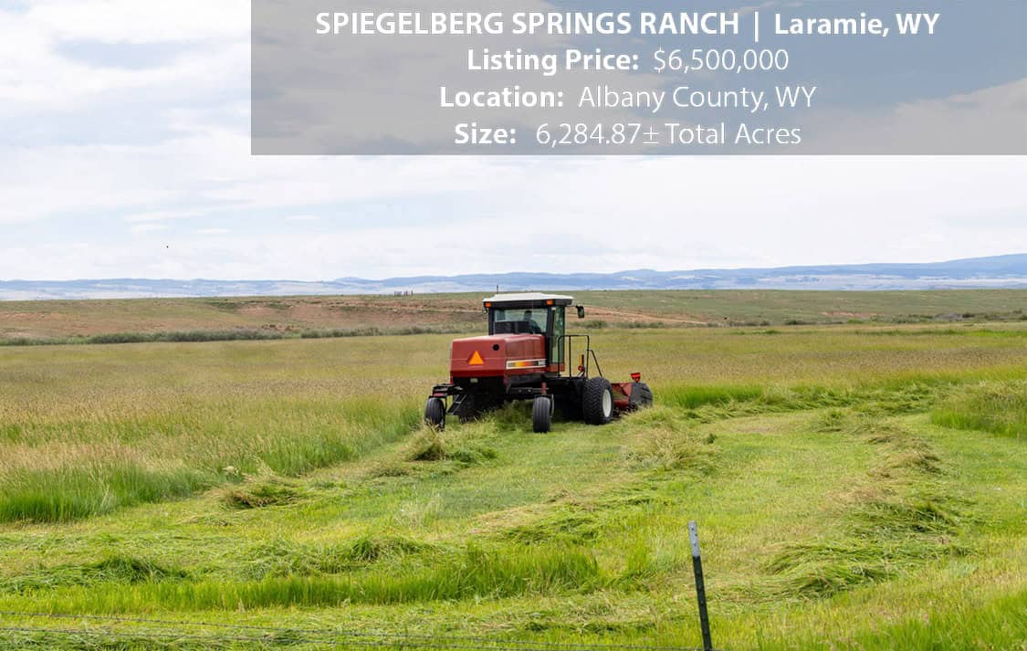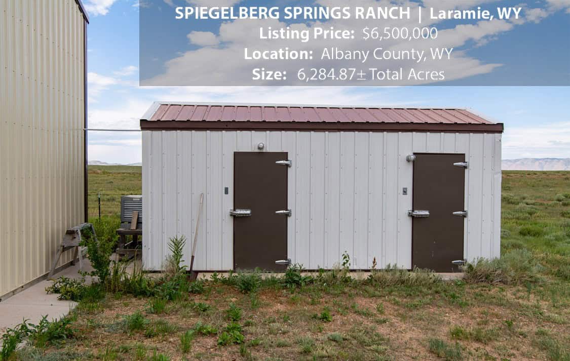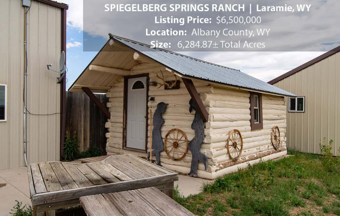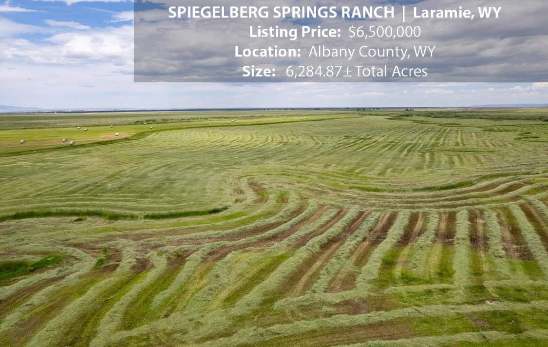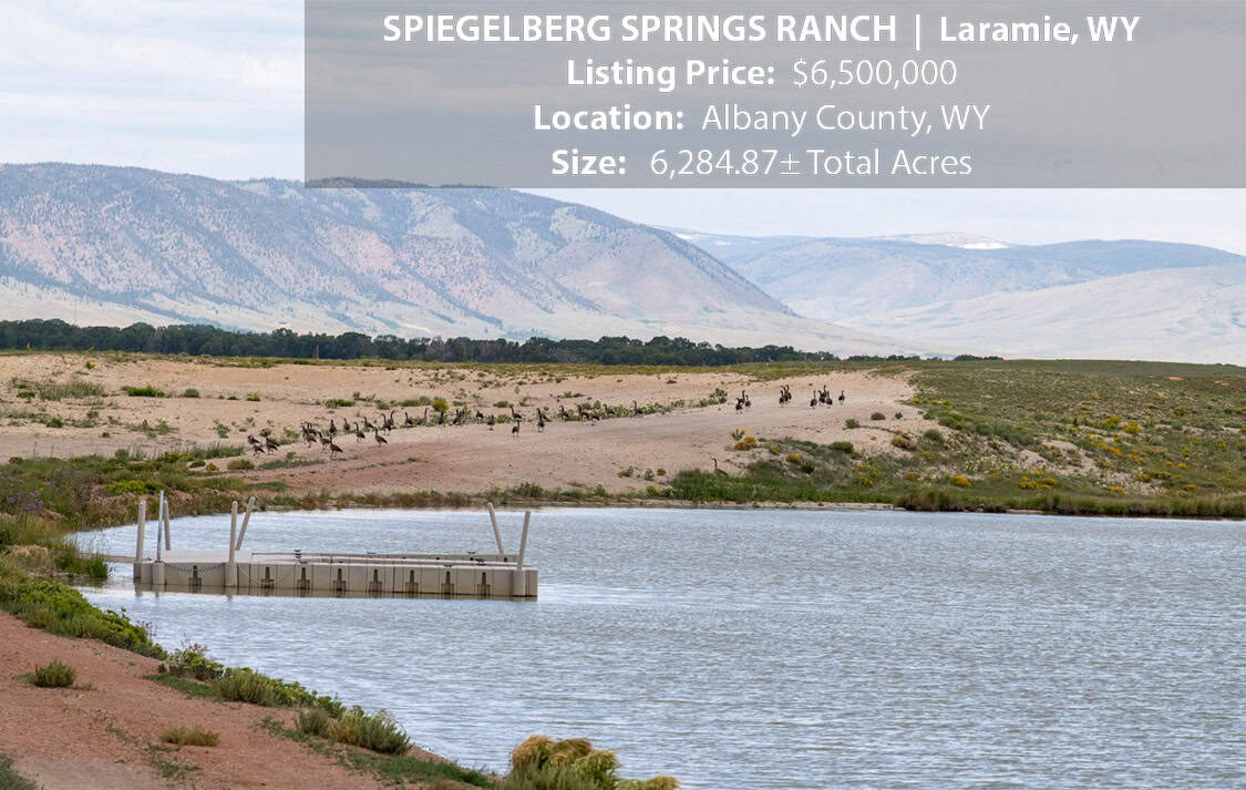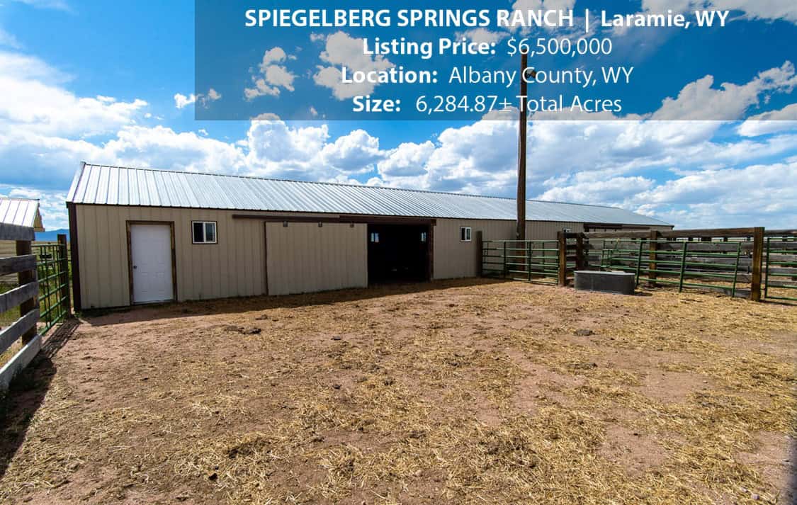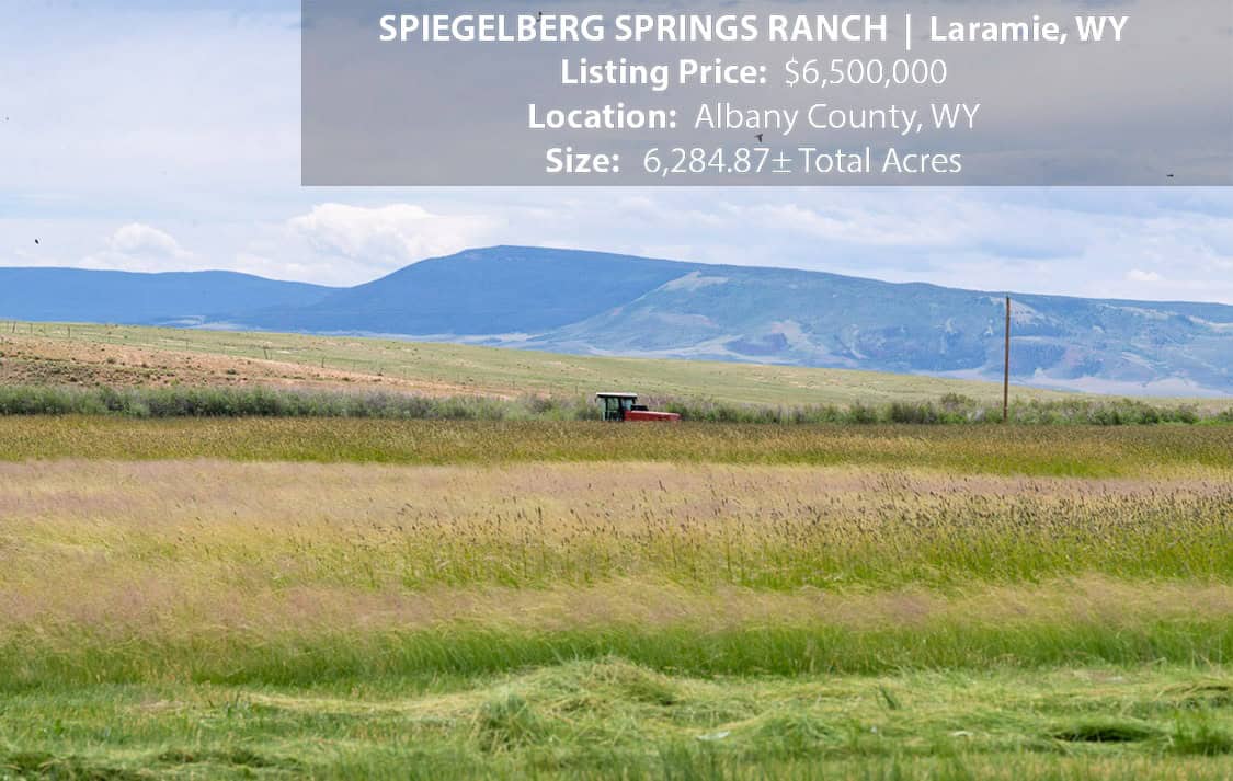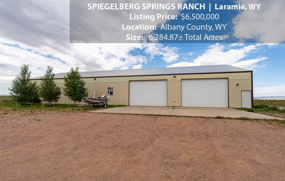 • Located approximately 19 miles southwest of Laramie, Wyoming and surrounded on three sides by the Laramie Mountains, the Spiegelberg Springs Ranch consists of 6,284.87± total acres of which 5,019± acres are deeded and 1,265± acres are State of Wyoming lease acres.