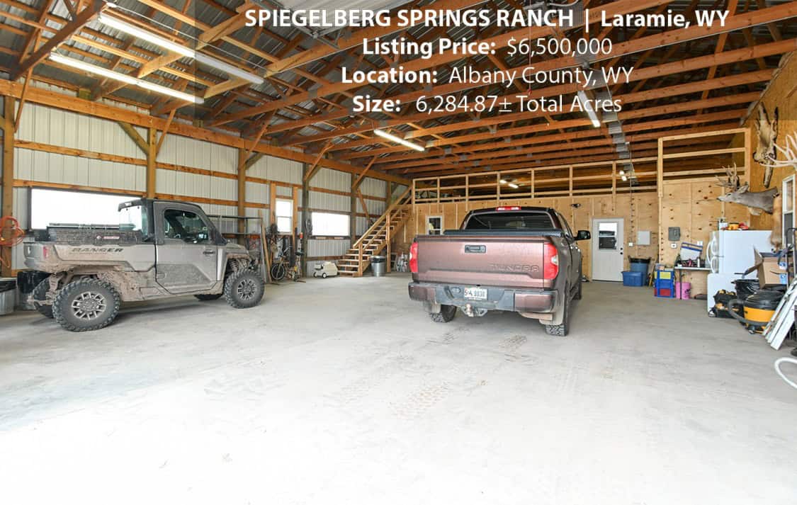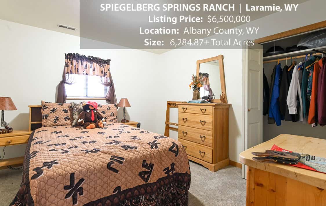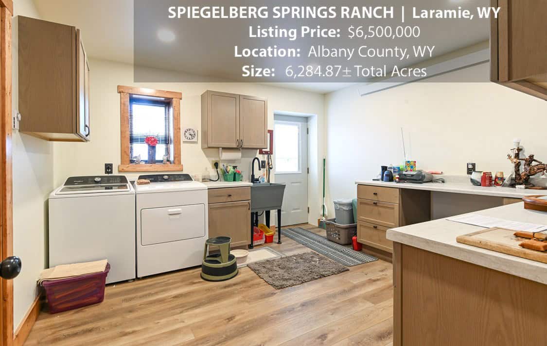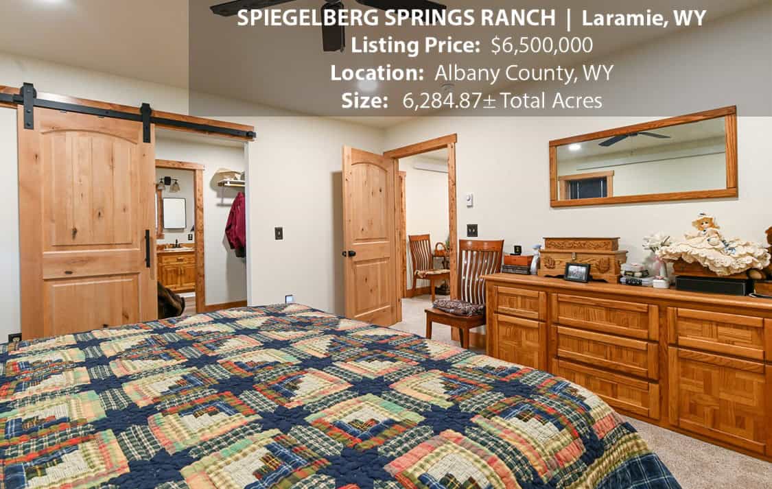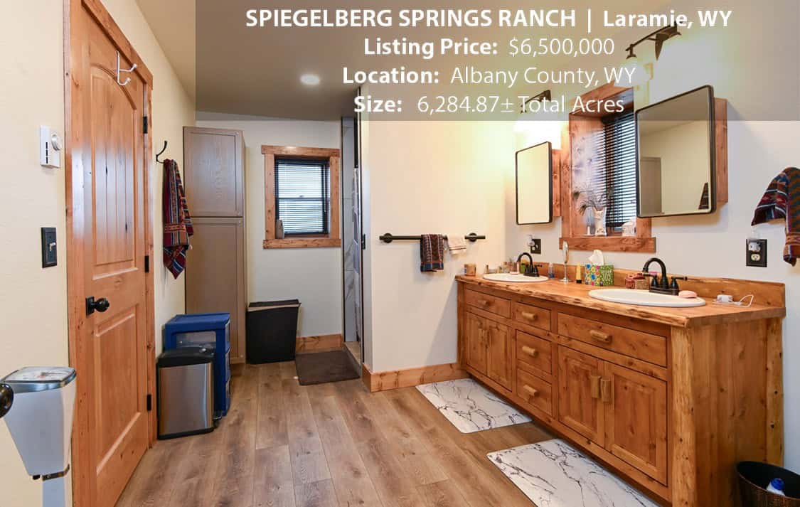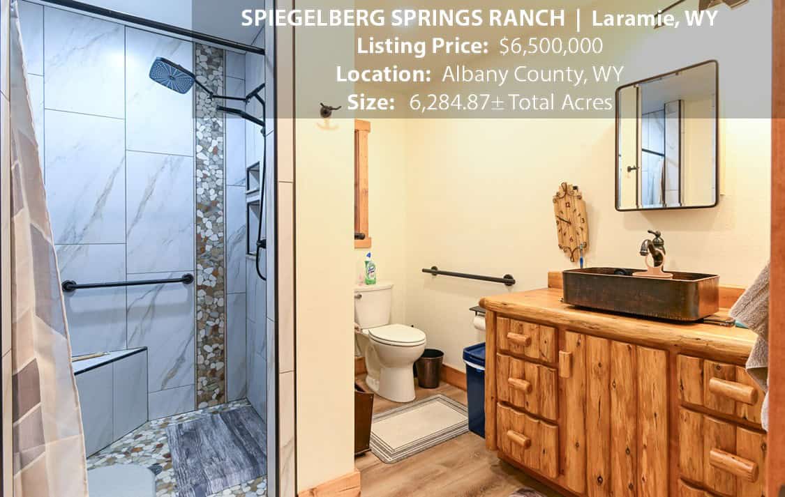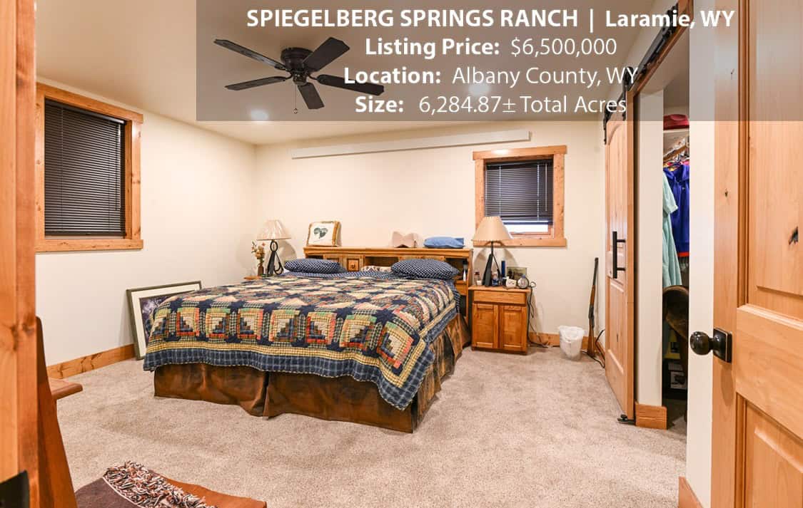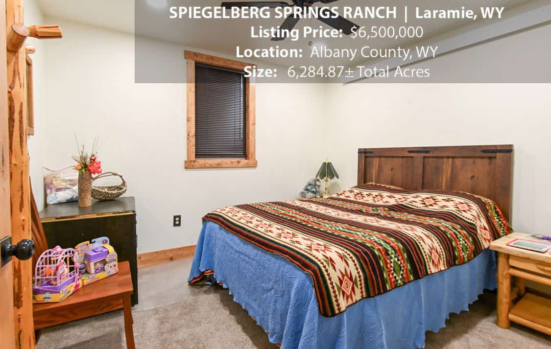 • Located approximately 19 miles southwest of Laramie, Wyoming and surrounded on three sides by the Laramie Mountains, the Spiegelberg Springs Ranch consists of 6,284.87± total acres of which 5,019± acres are deeded and 1,265± acres are State of Wyoming lease acres.