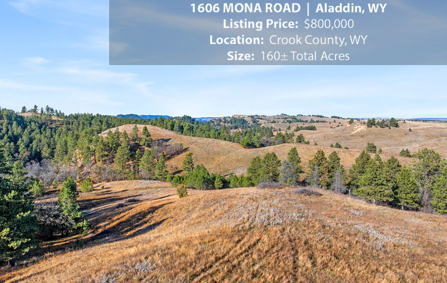 Located on the northern edge of the Wyoming Black Hills is the property at 1606 Mona Road consisting of 160± deeded acres comprised of timber covered hilltops and grass covered grazing land. The residence is a modest 1,248 sq. ft. home with a full, unfinished basement. A 30x56 pole barn is also included with the property as well as a 14x32 open sided livestock shelter and a 14x32 storage shed. A set of shipping corrals is conveniently located off the county road and the property is fully fenced. Year-round access is provided via Mona Road, a county-maintained-gravel road. A variety of wildlife is known to frequent the property.