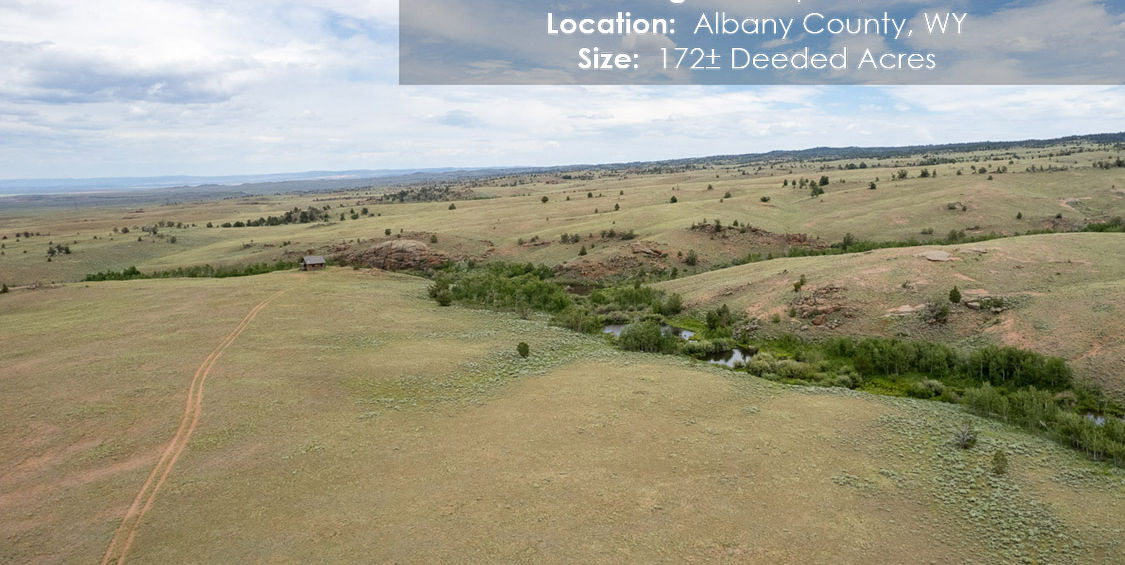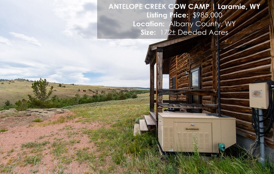 With the Colorado state line as its southern border, this 172± deeded acre property sits south of Laramie, Wyoming, just off Sand Creek Road. The property has direct access to over 200± acres of BLM land and 640± acres of State of Wyoming land and live water from Antelope Creek making this a beautiful legacy family retreat or an exceptional elk (Area 8) and deer (Area 77) hunting property. Access is provided off Running Water Ranch Road to the custom log cabin with 748 sq. ft. on the main floor and a 448 sq. ft. loft. This one bedroom and one-bathroom cabin is set on a permanent 5 ft. crawl space and is powered by a 7,500 KW Generac, Guardian propane powered generator. Overlooking a series of beaver ponds on Antelope Creek the cabin is the perfect spot to sit by the fire and watch a number of species of wildlife while enjoying all the tranquility that nature and seclusion can provide.