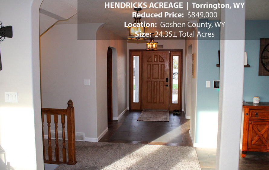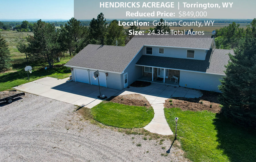 Located 7 miles east of Torrington, Wyoming, and just west of Henry, Nebraska is the Hendricks Acreage. This property offers a 4-bedroom, 3.5 bathroom home that was constructed in 1993, along with a 30’X40’ shop, and additional outbuildings that provide options for the hobby farmer. The home offers 2,820 sq. ft. of above grade and a full walkout basement. The spacious main floor has the primary bedroom with a beautiful, attached bathroom and walk-in closet. The upper level offers 2 additional bedrooms and a full bathroom while the basement offers an open living/family area with the final bedroom and a ¾ bathroom. The home is complete with an attached 2 car garage that is fully insulated and heated. The mature landscape that surrounds the property is impressive. There are 2 wells on the property, and one is dedicated to the expansive sprinkler systems that service multiple zones for watering the lawn and the surrounding trees. In addition, there are 9± acres of Pathfinder water rights for irrigation of the property. Come and enjoy the view from the newly constructed deck on the property or enjoy the natural warmth of the home in front of the main-floor fireplace. The Hendricks Acreage offers 24.35± acres of country living but is conveniently located off of Highway 26 and Goshen County Road 63.
