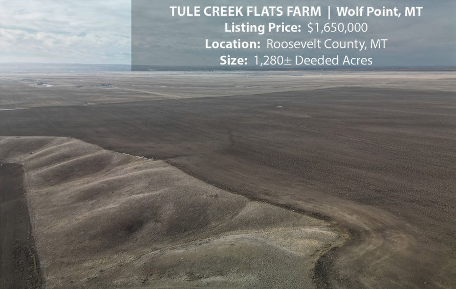 The Tule Creek Flats Farm is in a prime location for all logistics of a farming operation. Consisting of 1,280± acres, these half section tracts have been in a strategic crop rotation for the last 5 years with the current owner. There are 116± grass acres fenced within the property with Tule Creek traversing through the grass for approximately ¼ mile, providing year-round live water. The property features exceptional access located directly off County Road 17-2058. Sitting just 2.5 miles north on US Highway 2 and a half a mile off Highway 13, this farm is located within 5 miles of two high-capacity grain elevators and within 3 miles of two major fertilizer and chemical suppliers. The property had been managed with a top-notch crop rotation and fertilizer/chemical program, making this is a “buy and seed” type place.